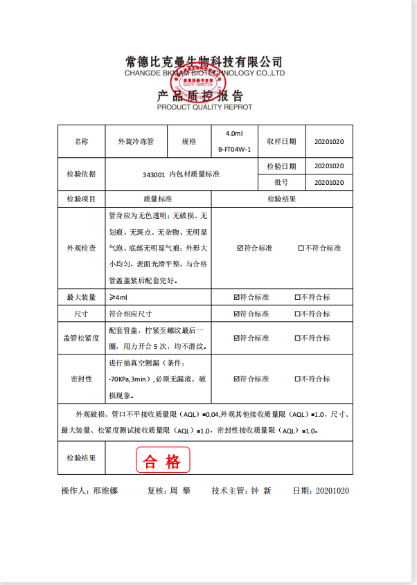 外旋冷凍管 (凍存管) 4.0ml 100個袋 B-FT04W-1 20201020